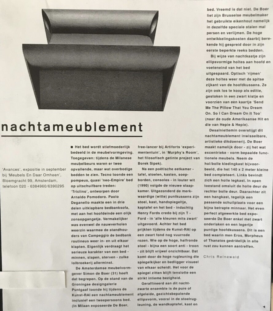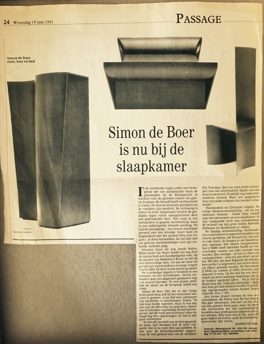 In 1992 waren de nachtmeubelen ook te zien op de KunstRAI. Galerie Puntgaaf uit Groningen, die in de Europahal een stand had, had Simon de Boer uitgenodigd. Meubels van Simon de Boer werden met regelmaat geëxposeerd en verkocht in de Groningse galerie.
