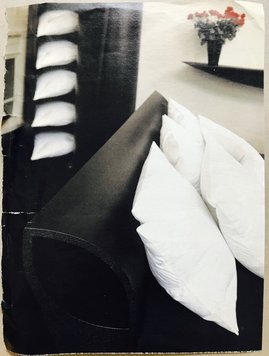 Rechts: Het donskussen met inkepingen werd in een houten kist verkocht, om aan een geliefde te sturen, die het dan na gebruik weer terug zou sturen, zoals in de song 'Send me the pillow that you dream on so darlin' I can dream on it too'.