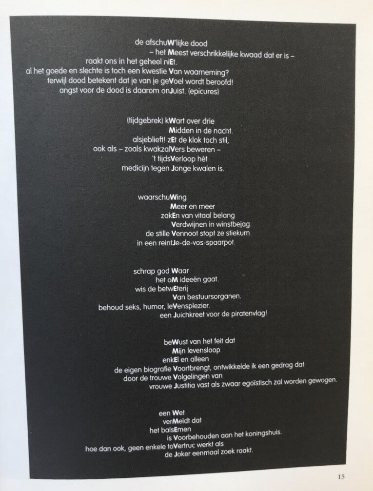 Pagina's uit het magazine over de 16 mesostics re and not re John's Cage 36 mesostics re and not re Marcel Duchamp. Luister hieronder naar de Nederlandse versie.
