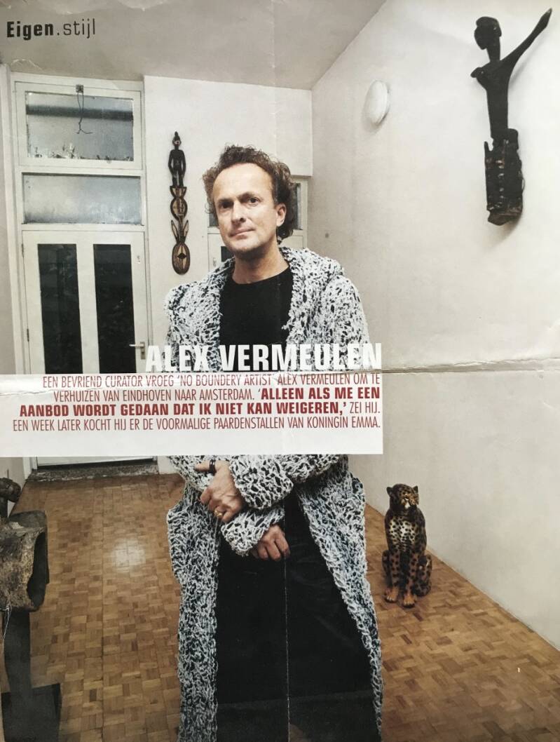 Rechts: Artist Alex Vermeulen kocht het vest aan voor zijn mode-collectie. Elle, 2020
