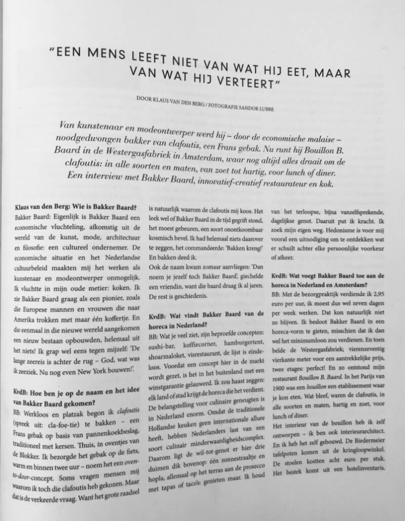 L'officiel Hommes, herfst/winter 2012. Redactie stuurde de vragen voor het interview met Bakker Baard, Simon de Boer schreef de antwoorden.